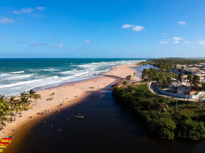À une heure à peine au nord de Salvador, Praia do Forte allie la beauté naturelle au charme de la sophistication côtière. Ancien village de pêcheurs, il accueille aujourd'hui des pousadas de charme, des restaurants en bord de mer et un tourisme respectueux de l'environnement. Ses eaux calmes et ses récifs coralliens sont idéaux pour la plongée avec masque et tuba, tandis que le projet Tamar, consacré à la conservation des tortues de mer, est une visite incontournable pour les familles et les amoureux de la nature. Entourée de palmiers et de réserves protégées, Praia do Forte offre un luxe décontracté avec une forte âme environnementale.