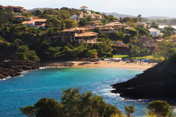 Búzios conserve le charme d'un village de pêcheurs caché, avec ses rues pavées et ses bateaux de pêche flottant sur la mer, un petit paradis où les visiteurs peuvent trouver à la fois la paix et le divertissement. Les journées ensoleillées peuvent être appréciées sur l'une des 20 magnifiques plages, dont les eaux cristallines contrastent avec le paysage luxuriant et sculpté et la végétation exotique. Outre les plages les plus connues, il existe de nombreuses autres plages préservées, désertes, d'une grande beauté naturelle et d'une tranquillité absolue.